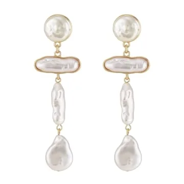 Show more Elevate your accessory game with the Donabus Statement Pearl Dangle Earrings, where elegance meets modern style. Crafted from high-quality materials, these earrings shine with exquisite gold plating that radiates luxury while ensuring lasting durability. Measuring just the right length, they offer a stunning silhouette that enhances any outfit without overwhelming it. Perfectly designed to avoid tangling in hair or clothing, they are a seamless addition to your everyday wear, making you feel fabulous with each wearing.