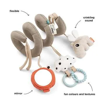 Done by Deer Baby Sensory Activity Spiral Happy Clouds, Sand - Soft Baby Toy with Crinkle Sound, Mirror, Teathers and Tactile Elements for Easy Mount on Cots, Car Seats, Strollers and Prams