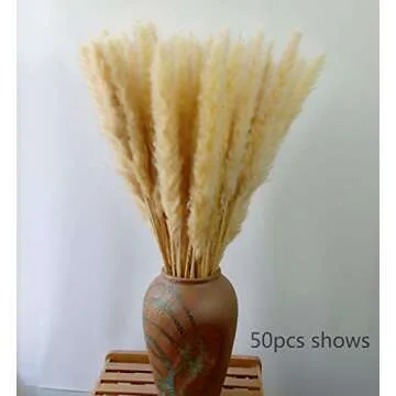 DongArts 60 Pcs Dired Small Pampas Grass Bunch, 23 Inch Natural Dried Reed Plumes for Wedding Decor (Light Yellow)