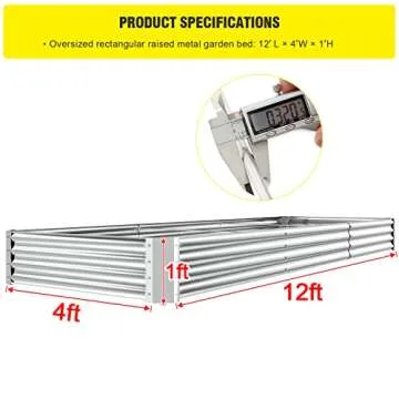 Doniks Raised Garden Beds 12×4×1ft Outdoor Metal Galvanized Garden Planting Box for Vegetables Lawn Green Flowers, Fruits, Terrace