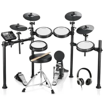 Completing the kit is a wide array of premium accessories to enhance your drumming experience. Enjoy the ability to control your sounds with dual-zone mesh snare and toms for versatile play, a sensitive kick drum compatible with double pedals, and a dynamic selection of cymbals, all engineered for a responsive, professional-quality feel. Ease of setup and incredible sound fidelity ensure you can get drumming in no time!