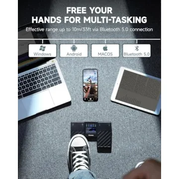 Show moreExperience the ultimate freedom of hands-free control with the Donner Wireless Bluetooth Page Turner Pedal. Designed specifically for musicians, readers, and presenters, this innovative foot pedal allows you to multitask effortlessly while maintaining focus on your performance or presentation. With a robust Bluetooth 5.0 connection, the pedal boasts an impressive range of up to 10 meters (33 feet), enabling you to control your devices seamlessly from various environments. Compatible with a wide array of systems and applications, you can easily manage music playback, scroll through lyrics, or turn pages without ever lifting a finger. With its sleek black design, it not only complements your setup but also enhances your overall efficiency and convenience.