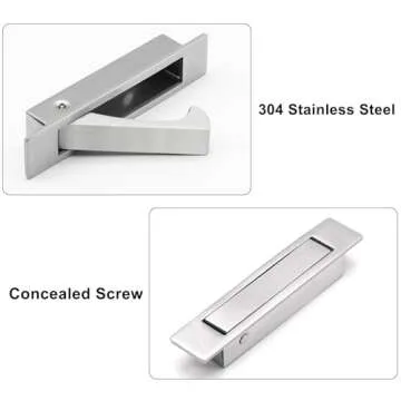 Show moreIntroducing the Dontay Pocket Door Pull Handle – a meticulously crafted addition to your home that combines elegance with unparalleled functionality. Made from premium 304 stainless steel, this solid piece boasts a satin finish that not only enhances your door’s aesthetic but also ensures rust and weather resistance, making it suitable for both indoor and outdoor use. Designed for the discerning homeowner, this door pull offers a beautiful low profile that adds a sophisticated touch to any space. It features a self-retracting mechanism that ensures the lever closes flush with the door panel, providing a seamless look.