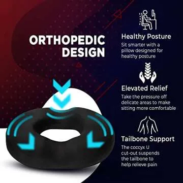 Show more Introducing the Donut Pillow Seat Cushion—an orthopedic gem that promises to enhance your sitting experience while alleviating discomfort. Crafted with premium memory foam and designed with exceptional attention to detail, this pillow has been recommended by chiropractors and doctors for its impressive ability to reduce pressure pain, promote proper spine alignment, and significantly boost overall comfort. Its unique donut shape is particularly beneficial for postpartum recovery, providing the support that new mothers need during delicate recovery.