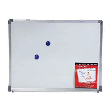 Show moreIntroducing the Dooley Boards Aluminum Framed Magnetic Dry Erase Board, the perfect solution for anyone seeking a reliable and versatile organization tool. Measuring 18x24 inches, this board boasts a sleek silver aluminum frame that not only enhances its aesthetic appeal but also ensures durability and functionality. Designed with both a magnetic surface and a spacious writing area (16.5 x 22.25 inches), it offers ample space to jot down thoughts, schedules, and reminders, making it an indispensable companion for home, office, or classroom use.