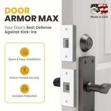 Door Armor MAX - Door Reinforcement Kit for Anti Kick Front Door Security, 5-Piece Door Reinforcement Plate for Door Jamb & Door Frame, Made in USA Home Security - White
