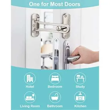 Door Lock Latch for Home Security - Swing Bar Door Guard for Front and Inside Door, Safety Childproof Reinforcement Door Stopper for Kids Home Hotel Apartment, Thicken Aluminium Alloy Satin Nickel (1)