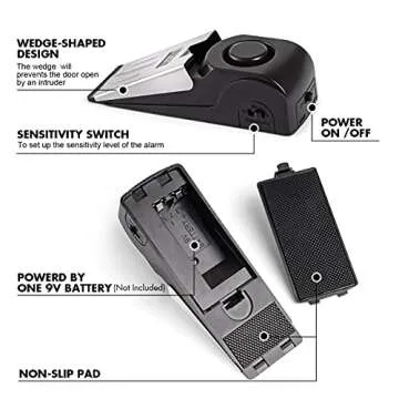 If you're on the hunt for a perfect blend of security, convenience, and stylish design, the Door Stop Alarm is your ideal choice. This innovative device hails from a trusted leader in home security and doubles up as both a doorstop and an alarming security system, providing unmatched protection for your home, apartment, or while you travel. With an alarming sound that reaches an astonishing 120 dB, you’ll be alerted immediately should anyone attempt to force open your door....