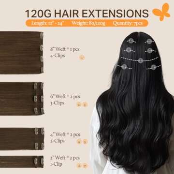 Designed with your comfort in mind, the DOORES extensions come as a set of 7 pieces totaling 120g, boasting a soft, silky texture and full ends that never split. The hand-made, double-layer hair weft construction ensures durability while providing a secure and comfortable fit. You deserve to feel confident and beautiful, and these extensions deliver that in spades!