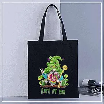 DOOSAI Christmas Gnome Diamond Painting Canvas Tote Bags Art Kits - DIY Handmade Gifts for Women Adults (Black)