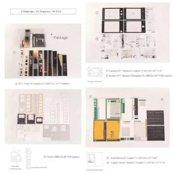 Doraking 94PCS Film Scrapbook Paper Packs for Journaling Supplies, Washi Stickers Material Papers Memos Cards Waterproof Tape Stickers for Journals Planners Aesthetic DIY Art Crafts Collage Album