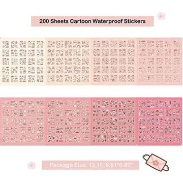 Show more Introducing the Adorable Sakura Sticker Pack by Doraking, a delightful collection that ensures every moment in your life is beautifully brightened. This unique set boasts an impressive 200 sheets of high-definition printed stickers, with each design crafted to capture your heart. The vibrant colors and charming illustrations make these stickers a perfect addition to your daily crafting projects. Made from high-quality PET material, they are not only durable and waterproof but also feature a transparent white bottom plate, ensuring long-lasting fun.