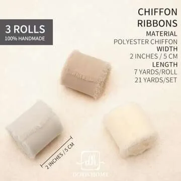 DORIS HOME 2" x21Yd Chiffon Ribbon for Flower Bouquet, Sand & Nude Fabric Ribbon for Gift Wrapping, Handmade Frayed Ribbon for Wedding, Chiffon Silk Ribbon for Christmas Decorations