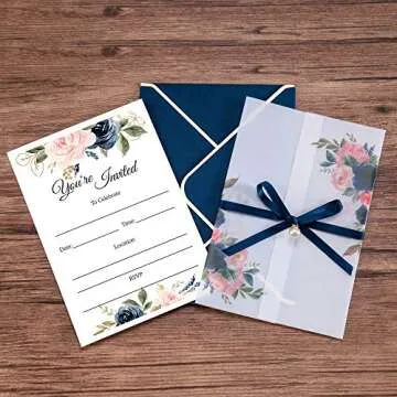 DORIS HOME 25PCS Navy Blue Invitations Cards with Envelopes and Fill-in Inner Sheets for Bridal Shower Invite, Baby Shower Invitations, Wedding, Rehearsal