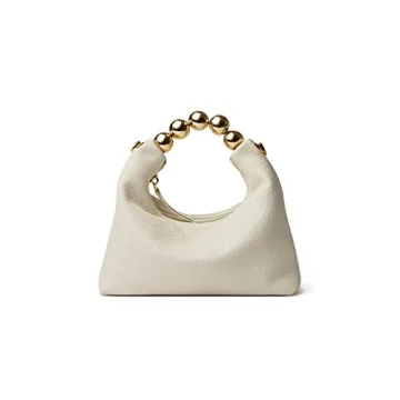 DORIS&JACKY Small Top Handle Clutch Bag Women Designer Goatskin Crossbody Purse With Pearl Handle And Detachable Metal Chain (White)