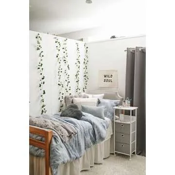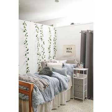 Dormify Charging Storage Drawer Organizer on Wheels | 3 Drawers | Fabric Drawers Storage | White & Grey | 1 Oulet & 2 USB Ports | Bedside Storage | Nightstand | 15"W x 11"D x 39"H | Bedroom Essential