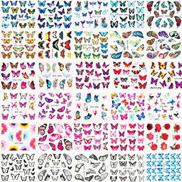 Dornail 30 Sheets Butterfly Nail Stickers - Summer Water Transfer Nail Art