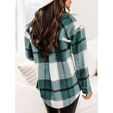 DOROSE Women's Shackets Fall Long Sleeve Button Down Flannel Plaid Shirt Jackets Coat (Green, Small)