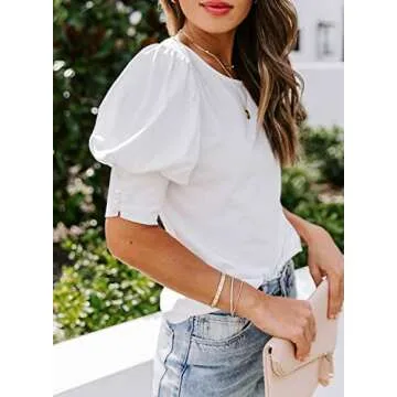 Show moreIntroducing the DOROSE Womens Tops Puff Short Sleeve Summer Blouses, the epitome of versatile fashion for 2024! Crafted from high-quality cotton, these tops are not only soft to the touch but also incredibly comfortable to wear, making them an ideal choice for the warm summer months. This blouse features a chic crew neck design, stylish puff sleeves with button cuffs, and presents a lovely solid color that effortlessly blends with any outfit. Designed for women who desire elegance and ease in their daily attire, this comfortable yet fashionable blouse is perfect for a variety of occasions, from casual outings to more formal business meetings.