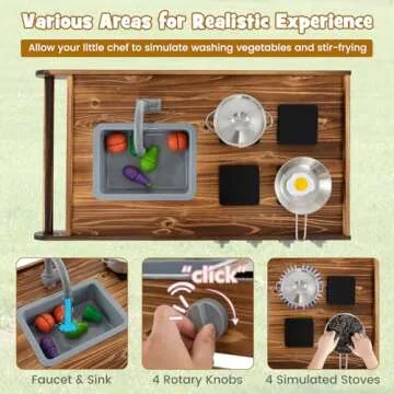DORTALA Mud Kitchen with Wheels, Fir Wood Rolling Mud Table Cart with Sink, Stoves, Faucet, Storage Shelf, Outdoor Play Kitchen for Toddlers, Mud Kitchen for Kids Outdoor