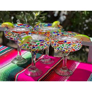 Dos Sueños Mexican Hand Blown Glass – Set of 4 Hand Blown Margarita Glasses Confetti Rock (16 oz) …