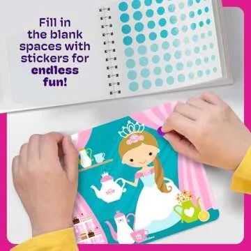Show moreThe Dan&Darci Princess & Unicorns Dot Sticker Art Kit is an enchanting gateway into the world of creativity and artistic expression for young minds. This all-inclusive craft kit is specially designed for children aged 2 to 6 years, allowing them to create stunning masterpieces with over 3000 colorful dot stickers. Featuring engaging princess and unicorn illustrations, each canvas invites little artists to unleash their imaginative flair and creativity. The stickers come in a dazzling variety of matte, foil, and glitter finishes, ensuring that every project sparkles with vibrant charm and personality. Perfect for both solo play and collaborative fun, this kit is sure to keep kids entertained for hours on end while fostering their artistic skills and attention to detail. Whether at home, on road trips, or during playdates, this kit promises a mess-free art experience that delights parents and children alike!