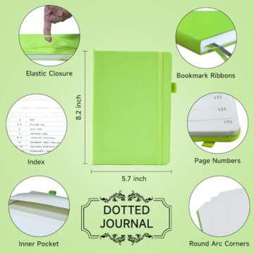 Show moreUnleash your creativity with the Feela Dotted Journal Kit, an all-in-one journaling solution designed to inspire beginners and experienced enthusiasts alike. Featuring a stunning Apple Green bullet dotted journal, this set includes everything you need to elevate your note-taking and planning game. With a total of 224 pages and 925 dotted grids, you can easily organize your thoughts, sketch out ideas, or plan your week in a visually engaging way. The premium thick paper is durable and designed to prevent bleed-through, ensuring your notes and artwork remain crisp and clear.