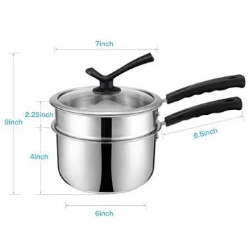 Double Boilers&Classic Stainless Steel Non-Stick Saucepan,Steam Melting Pot for Candle,Butter,Chocolate,Cheese,Caramel and Bonus with Tempered Glass Lid