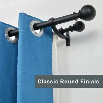 Double Curtain Rods 72-144 Inches, Matte Black Double Drapery Rod with Round Finials, Decorative Double Window Rod, 1-Inch Front and 5/8 Inch Back Telescoping Double Rod Curtain Rod