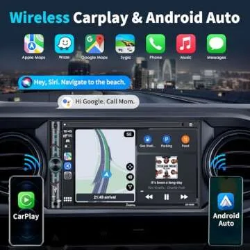 Double Din Car Stereo Compatible with Voice Control Apple Carplay - 7 Inch HD LCD Touchscreen Monitor, Bluetooth, Subwoofer, USB/SD Port, A/V Input, AM/FM Car Radio Receiver, Backup Camera