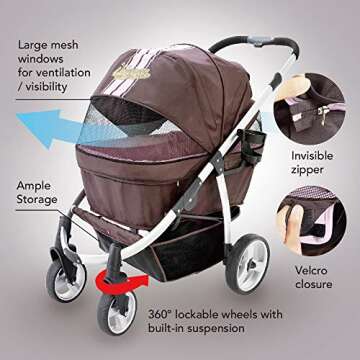 Double Dog Strollers for Large Dogs up to 77 Ibs, Aluminum Frame, 4-Wheel with Suspension