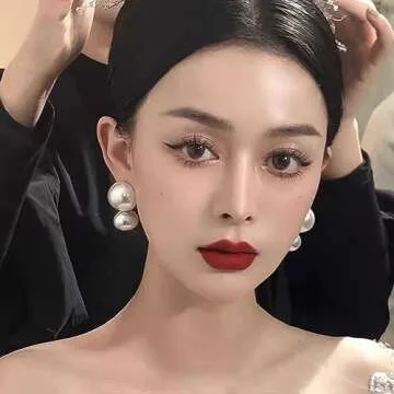 Double Pearl Earrings Pearl Stud Dangle Earrings Faux Pearl Earrings for Women Summer Gifts