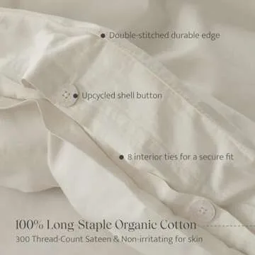 Show moreIndulge in the luxury of our Double Stitch 100% Organic Cotton Duvet Cover Set, where premium quality meets sustainable living. This exquisite 3-piece bedding set, designed in a chic coconut milk hue, provides a serene and elegant backdrop for your bedroom decor. Crafted from GOTS-certified long-staple cotton, our duvet cover set is a testament to enduring comfort and style. The 300-thread count sateen weave is gorgeously soft to the touch, transcending the ordinary hotel experience into the comfort of your own home.