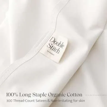 Double Stitch Organic Cotton Sheets Queen Size - Soft & Breathable Sheet Set 4 Piece, Luxury 300 TC Sateen Weave Bedding, 100% GOTS Certified Long Staple Cotton, Made in India, Coconut Milk