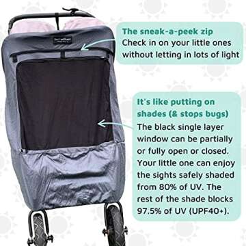 While several stroller sun shields offer UV protection, few reach the performance level of SnoozeShade's Double Stroller Sun Shade. Unlike generic models that merely provide coverage, SnoozeShade incorporates air-permeability and multiple convenient features like sneak-a-peek zips and universal fit. Many competitors miss these crucial aspects or often compromise on comfort and functionality, making SnoozeShade the definitive choice for conscientious parents who refuse to settle for less.