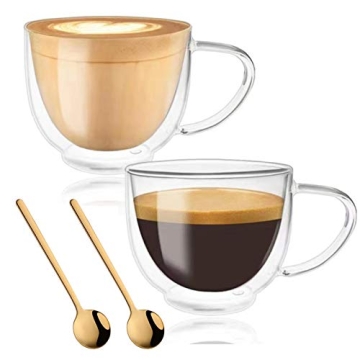 Double Walled Glass Coffee Mugs Set - Insulated Espresso Cups with Spoons