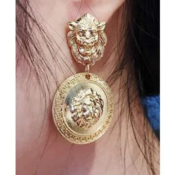 Show moreIntroducing the stunning Doubnine Lion Head Earrings, a striking accessory that boldly channels the glamour of vintage 80s fashion. Crafted from high-quality alloy and finished with a luxurious gold plating, these earrings are designed to turn heads and elevate any ensemble. Featuring a magnificent lion head, each piece is a testament to chic elegance, combining modern style with a playful nod to classic baroque aesthetics. The unique coin design set in a large circle adds a trendy twist, making them perfect for women who want to showcase their individuality with regal flair.