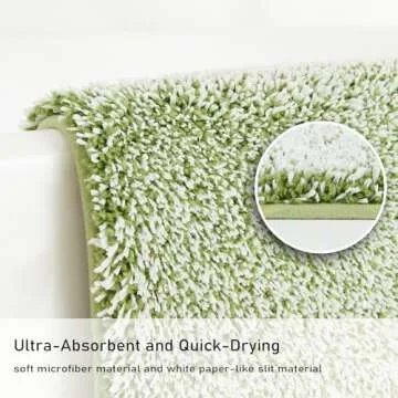 Douceur Sage Green Bathroom Rugs Non Slip, Luxury Thick Plush Shaggy Bath Mats for Bathroom Washable, Fluffy Absorbent Bath Rugs for Bathroom, Quick Dry Shower Mat Gifts, 24" x 16"