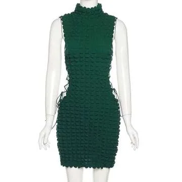 DOUCIU Women,s Stacked Mini Dress High Neck Sleeveless Hollow Out Lace Bodycon Party Clubwear Dresses (X-Large, Green)