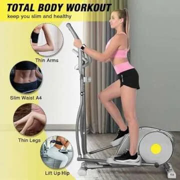 Show more Discover the ultimate combination of fitness and convenience with our state-of-the-art elliptical trainer. Designed for modern living, this elliptical machine features a portable and upgraded design with smooth-moving wheels, allowing you to easily reposition it in your home. Our 2022 upgraded machine is not just more stable, but it also supports a maximum load of 250 lbs, making it suitable for a variety of users.