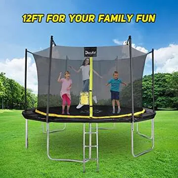 Doufit Upgraded 8FT 10FT 12FT 15FT Trampolines with Enclosure Net and Ladder, ASTM Approved Outdoor High-Capacity Family Yard Recreational Trampoline for Kids & Adults with PVC Cover & Wind Stake
