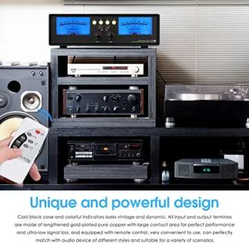Every input and output terminal is crafted from lengthened gold-plated pure copper, ensuring a larger contact area for superior performance and minimal signal loss. The inclusion of a remote control adds another layer of convenience, making it easy to operate from anywhere within your space. Whether you’re a passionate audiophile or simply looking to elevate your sound system, the VU2 offers the perfect balance of aesthetics and functionality.