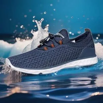 Show moreUnleash your adventurous spirit with the DOUSSPRT Men's Water Shoes, designed for the active individual who craves durability and style. These quick-drying aqua shoes combine the latest in breathable air mesh technology with a robust construction to ensure your feet stay comfortable, regardless of the activity. Whether you're splashing in the shallow waters of the beach or tackling rugged trails, these shoes provide the perfect balance of function and comfort. Featuring a striking blue color, they effortlessly blend style with performance, making them an essential addition to your outdoor gear.