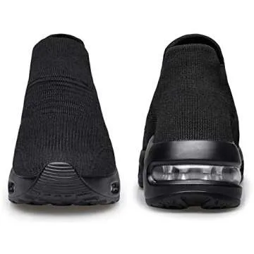 DOUSSPRT Womens Walking Sneakers Slip on Sock Shoes Mesh Air Cushion Platform Workout Tennis Loafers Fashion Casual 002 allblack US Size 10