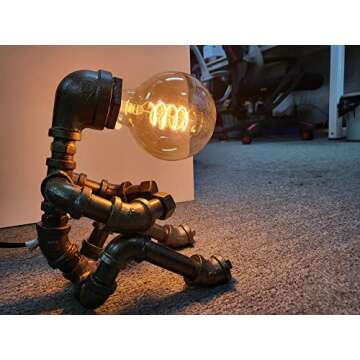 Show more Step into a world where creativity meets functionality with the DOVDOV Retro Industrial Robot Water Pipe Lamp. This mesmerizing piece not only illuminates your space but also serves as a remarkable conversation starter. Crafted from high-quality steel, this lamp features a distinct retro industrial design that mimics the look of antique machinery. The bronze finish adds a touch of elegance while enhancing its unique character, making it a perfect addition to any decor, be it modern or vintage. With dimensions that fit effortlessly in various spaces—ranging from your bedside table to a cozy cafe—this lamp is both stylish and versatile.