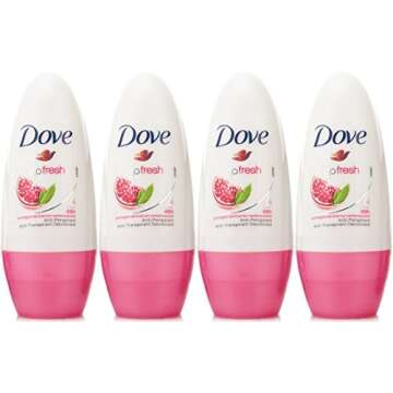 Show moreDiscover the rejuvenating power of Dove Antiperspirant Deodorant Roll-On, featuring an invigorating scent that blends Go Fresh Pomegranate with the refreshing essence of Lemon Verbena. This 1.7 Oz (50 ml) roll-on formula combines effective protection against sweat and odor with a burst of fruity freshness that lasts throughout the day, making it a perfect choice for anyone looking to stay dry and invigorated. This convenient pack of 4 ensures you have ample supply for your busy lifestyle, giving you confidence at home, work, or when you're on the go.