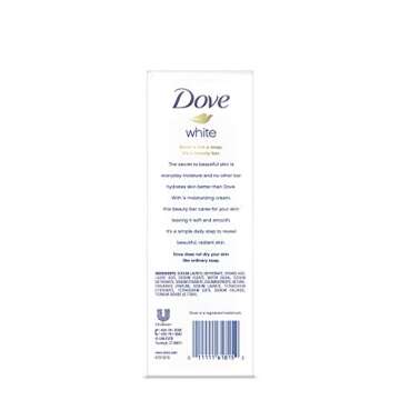 Show more The Dove White Beauty Bar is more than just a soap; it's a luxurious experience that pampers and nourishes your skin like never before. With its unique formula, this bar is designed to lock in moisture, ensuring your skin feels softer, smoother, and radiantly healthy. It features ¼ moisturizing cream, making it perfect for sensitive skin and ideal as both a facial cleanser and body wash. Unlike ordinary bar soaps, Dove White Beauty Bar cleanses without stripping the skin's natural moisture barrier, creating a rich lather that gently cares for your skin with every use. The dermatologist-recommended formula offers a gentle cleanse that revitalizes the skin without the drying effects typically associated with traditional soaps.