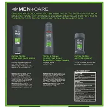 DOVE MEN + CARE Limited Edition Men's Holiday Grooming Gift Pack Extra Fresh Body Wash, Antiperspirant, and Shampoo+conditioner 3 Count