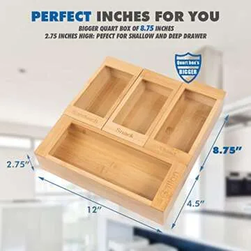 DoveeDosa With Bigger Quart Box Food Storage Bag Organizer- Sandwich Bag Organizer for Drawer- Baggie Organizer Dispenser for Drawer, Compatible with Ziploc Bag Storage Organizer