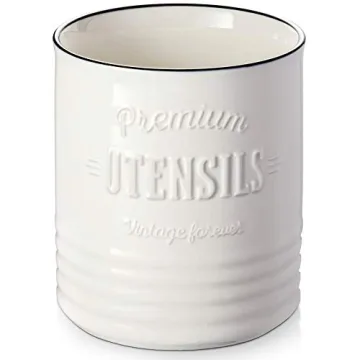 The DOWAN Utensil Holder stands out with its extra-large capacity, sturdy ceramic construction, and included cork mat, offering superior functionality and style compared to typical metal or plastic holders.